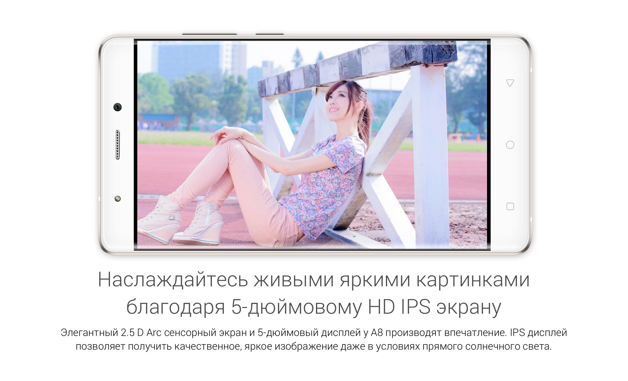 Как и другие разработки китайского бренда, оригинал blackview a8 mtk6580a радует практически полным отсутствием рамок и весьма элегантным дизайном, а наличие боковых накладок из металла позволяет устройству выглядеть солидно и дорого. Весьма продумано расположение кнопок и разъемов, а на передней панели владельца ожидают традиционные три сенсорные клавиши и динамик. Эргономичная конструкция исключает сложности, связанные с удержанием аппарата. 5-ти дюймовый IPS дисплей с разрешением 1280 на 720 точек располагает датчиком для регулировки интенсивности подсветки, а также неплохой контрастностью в диапазоне от 1 до 587.